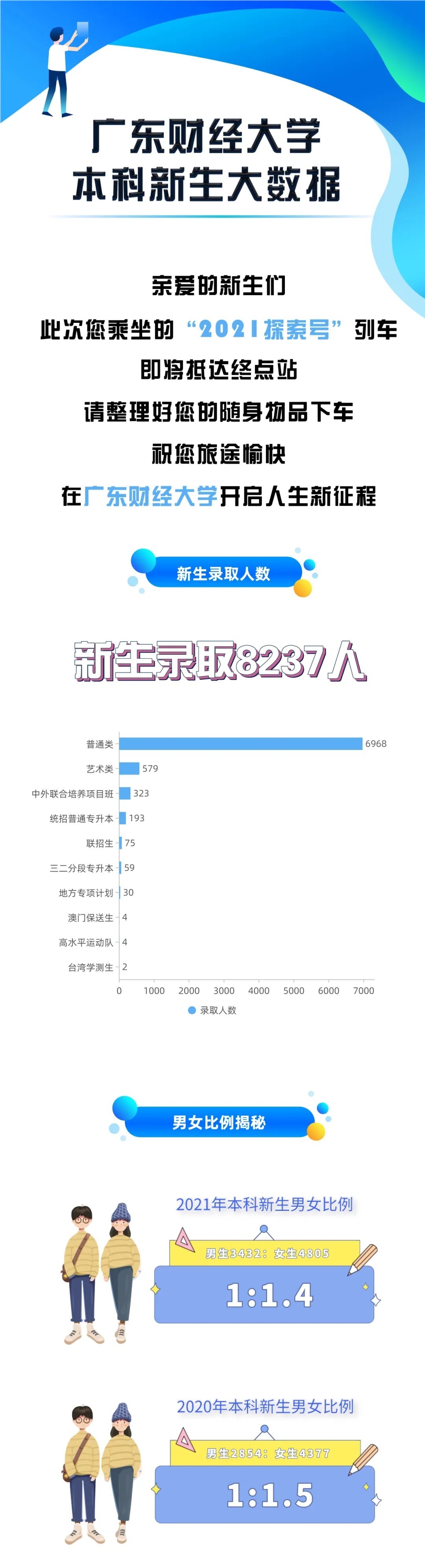 又是一年开学季今年我校录取本科生与研究生共9411人想知道新生男女比例吗?是否好奇有多少你的老乡?别急,下面就让小财通过大数据长图来告诉你吧!