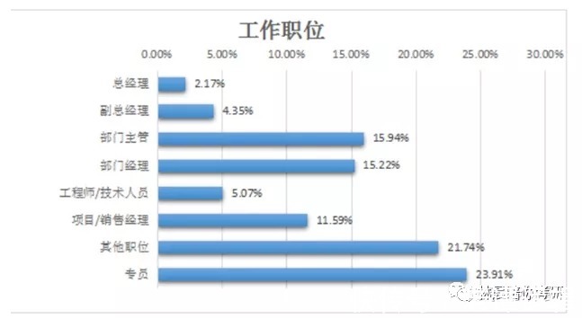 职级分布(占比前三):专员、部门主管/部门经理/销售经理等为主
