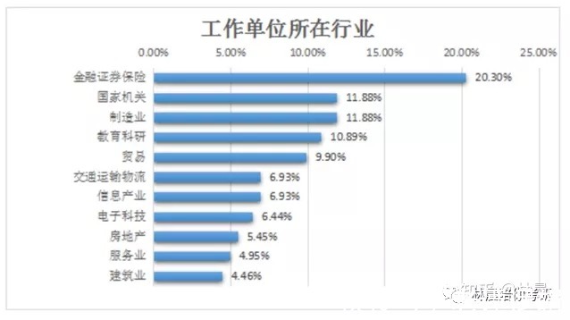 行业分布(占比前三):金融证券、制造业、国家机关和科研单位、贸易公司等